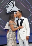 Ozuna and his wife, Taina Marie Meléndez, made the red carpet glam! The couple walked hand in hand at the 2021 Latin Grammys and shared a sweet kiss to mark their love. It was so cute! Ozuna, nominated for two awards, including best reggaeton performance and best urban music album for Enoc, looked handsome in a white tuxedo with black detailing and sheer red sunglasses. For an added pop, he wore black loafers with sequin bows. Taina showed off in a light corset dress with silver crystal flower and vine patterns and a chic silver Dolce & Gabbana purse. Read through to see the loved-up couple as they shared their affection on the red carpet, and don't forget to check here to find out if Ozuna scores a Latin Grammy tonight.